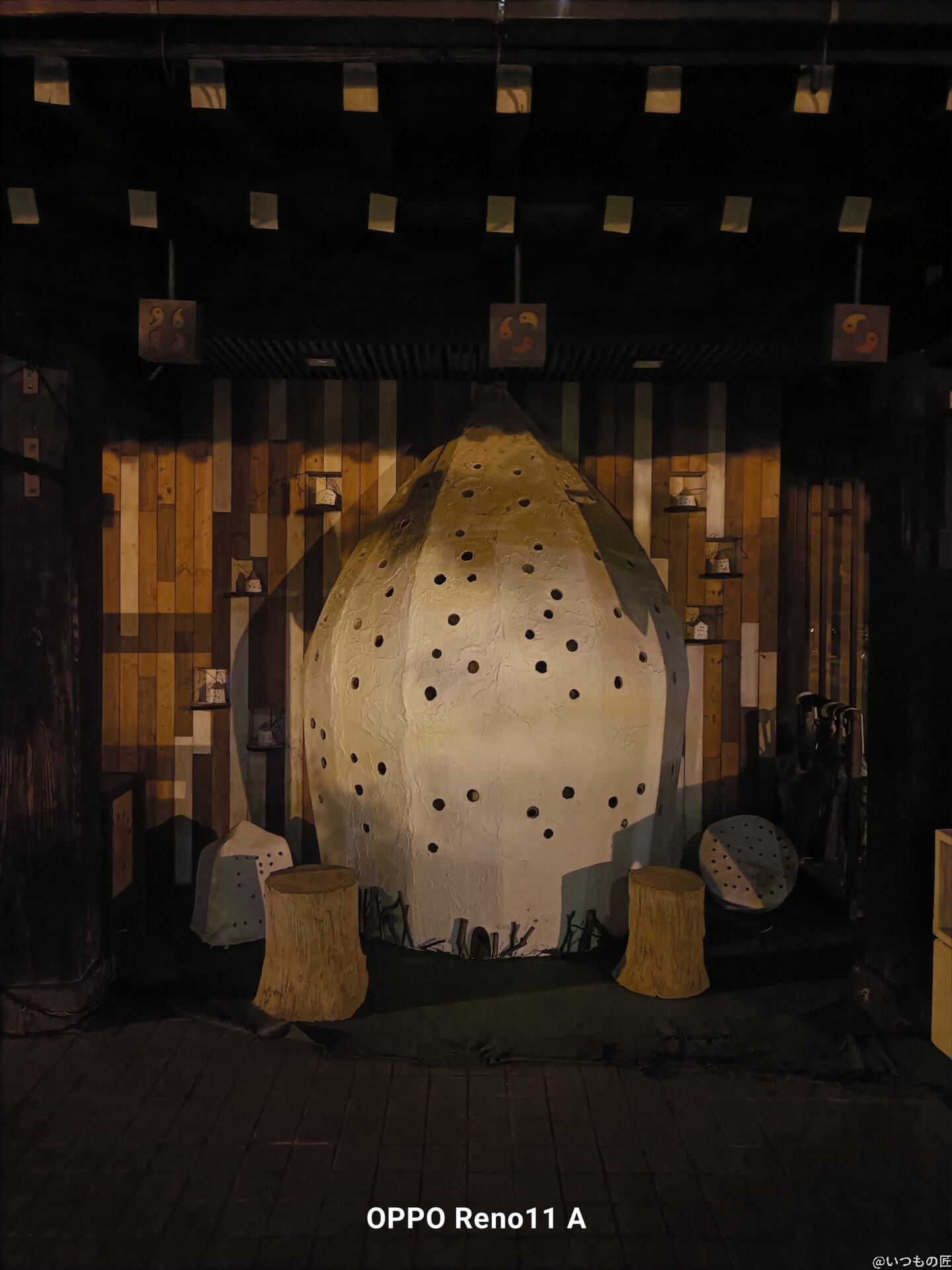 AQUOS wish4のカメラは明所撮影が得意な反面、暗所撮影では画質の劣化が激しく実用的ではありません。以下は、AQUOS wish4と、エントリーモデル~ミドルモデルのOPPO Reno 11Aの暗所撮影を比較した写真です。AQUOS wish4で撮影した写真では、全体的にノイズが発生し、ざらついている印象です。