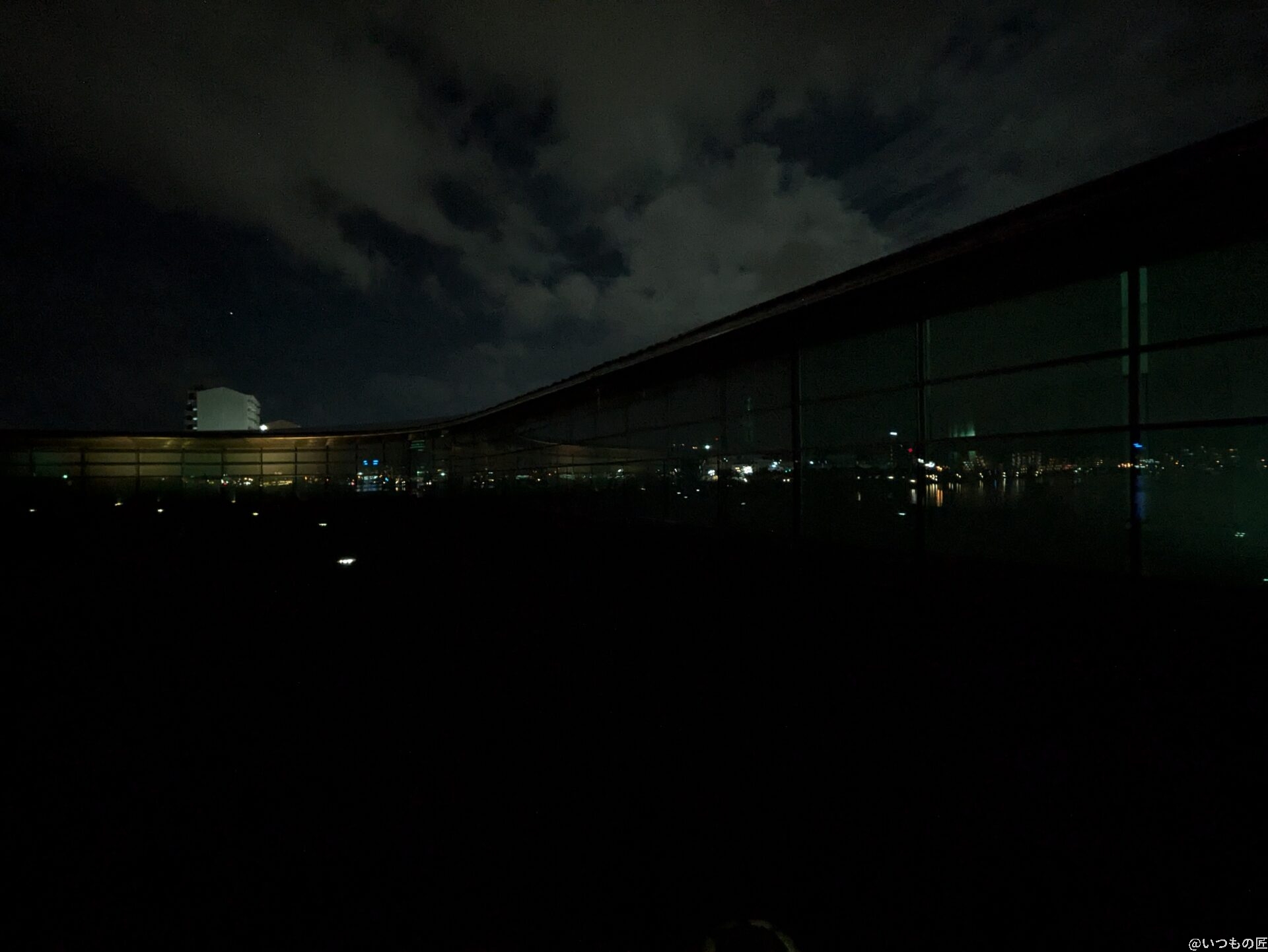 一方、以下の作例のような明るさが極端に足りないシーンでは、真っ暗な写真になり実用的ではありません。通常モードでの夜間撮影は、明るさが足りている環境に限定されます。