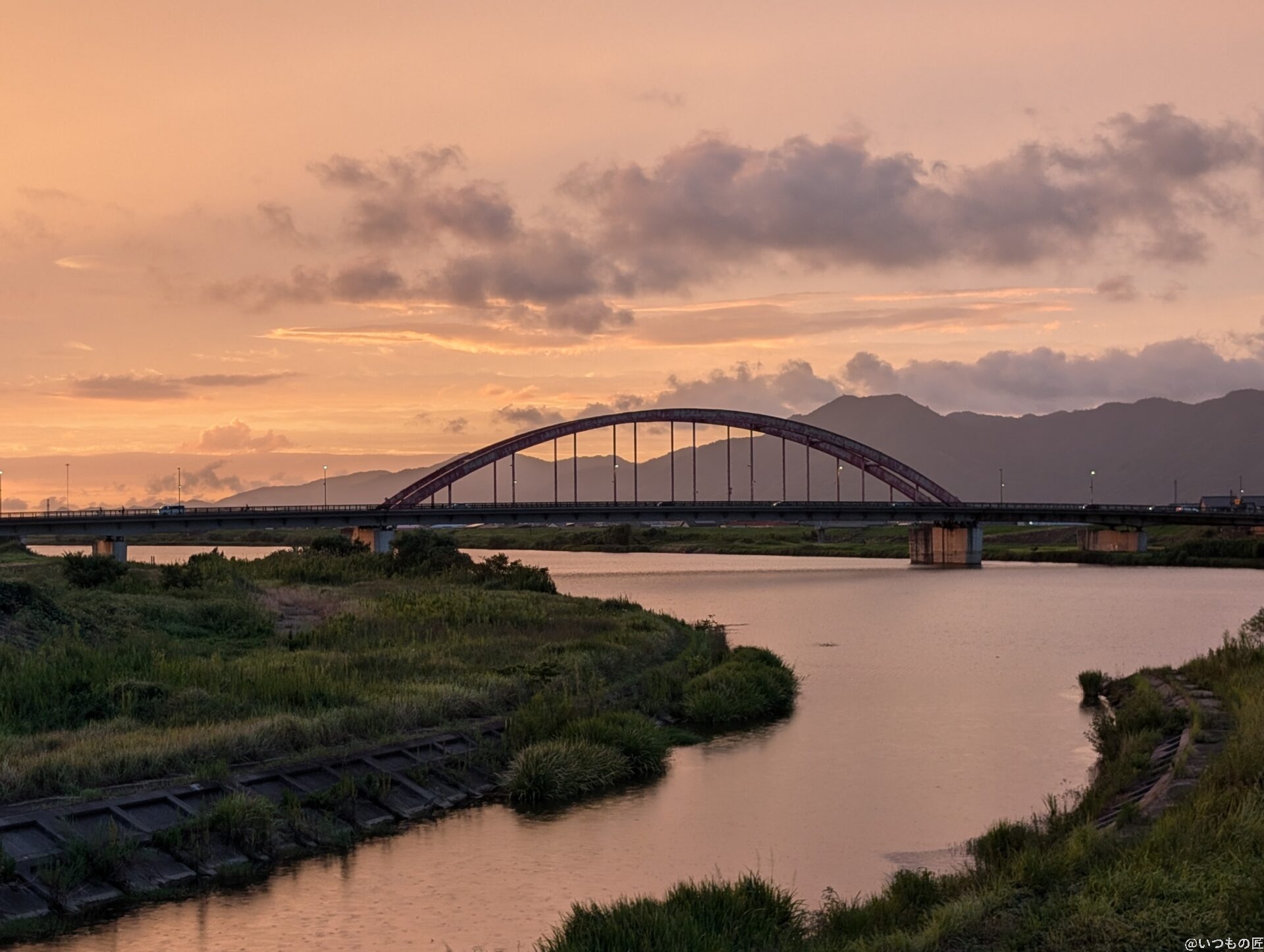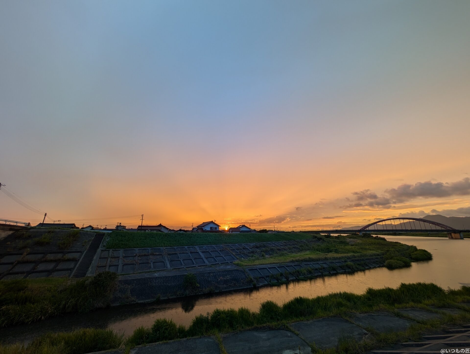 以下は、夕焼けを撮影した風景写真です。写真を拡大表示すると少し画質が粗いように見受けられますが、夕焼けに染まる街並みが色合い良く表現されています。