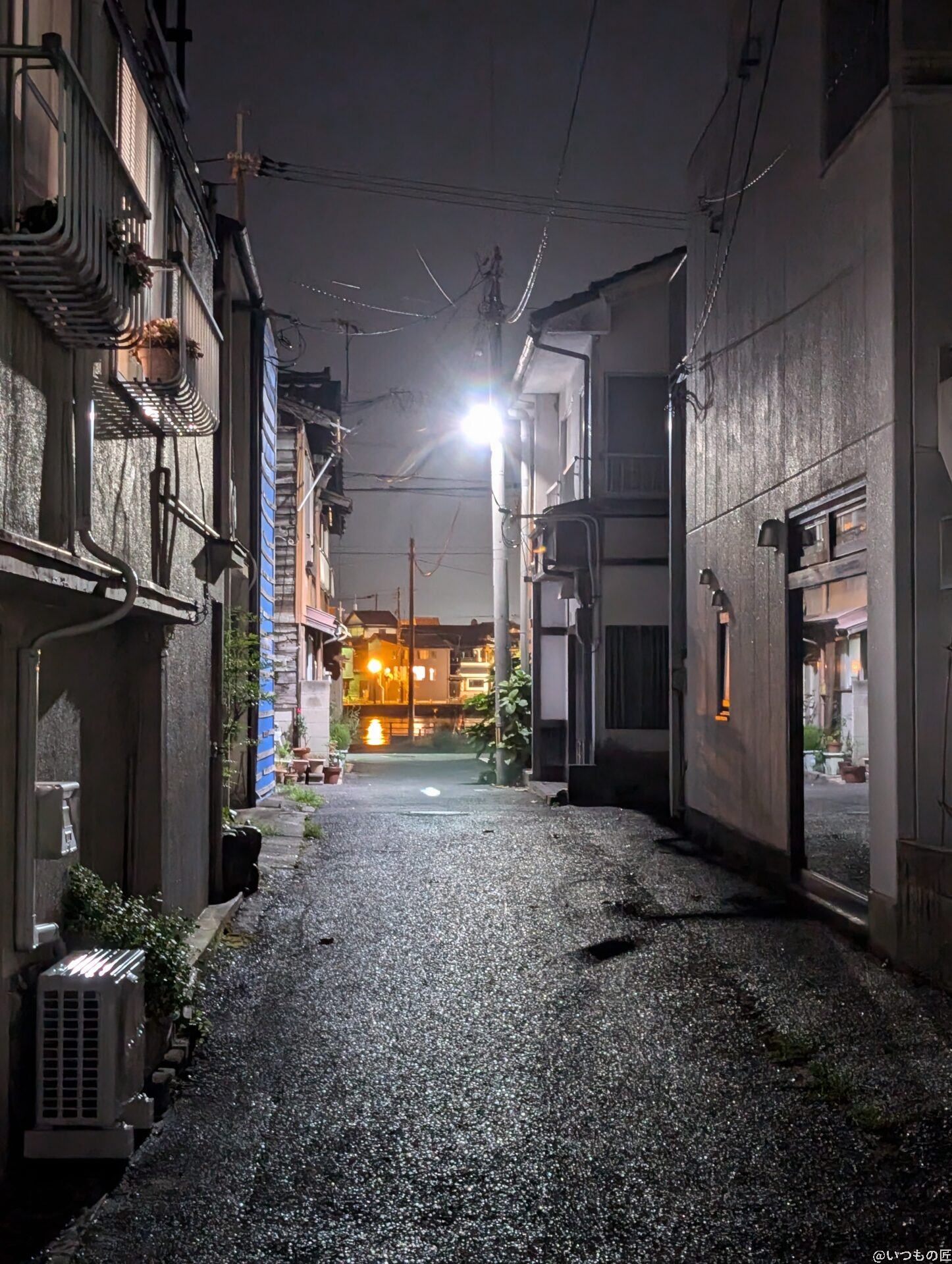 Google Pixel 9は夜景モードを搭載しており、暗い環境での写真撮影も低ノイズで明るい写真に仕上がります。以下は、通常モードと夜景モードを比較した写真です。