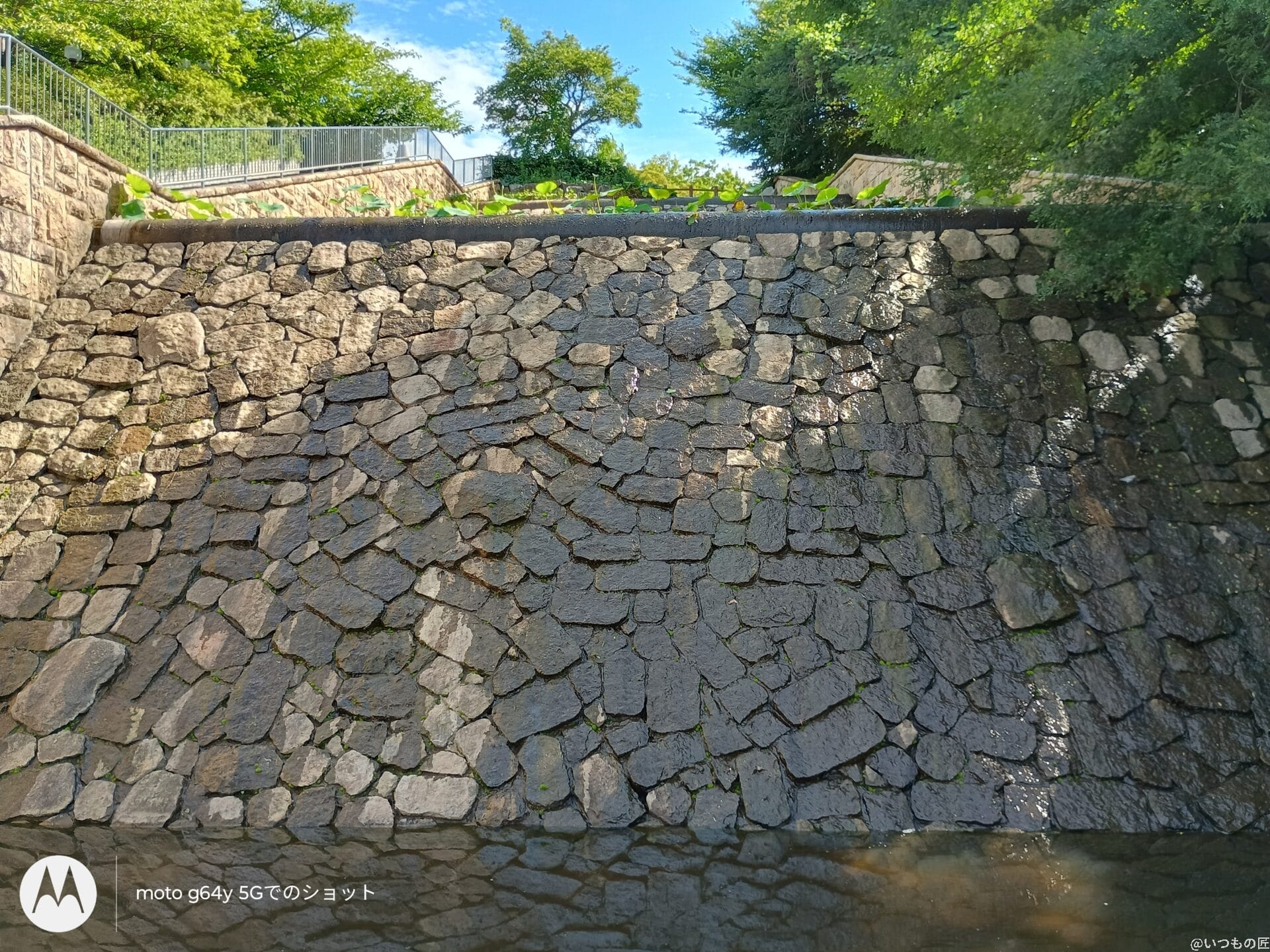 以下は、それぞれの作例の右上を切り抜き・拡大した写真です。moto g64 5Gの方が、石垣の細部までしっかり再現しています。AQUOS wish4に比べ鮮やかで、自然な色合いです。