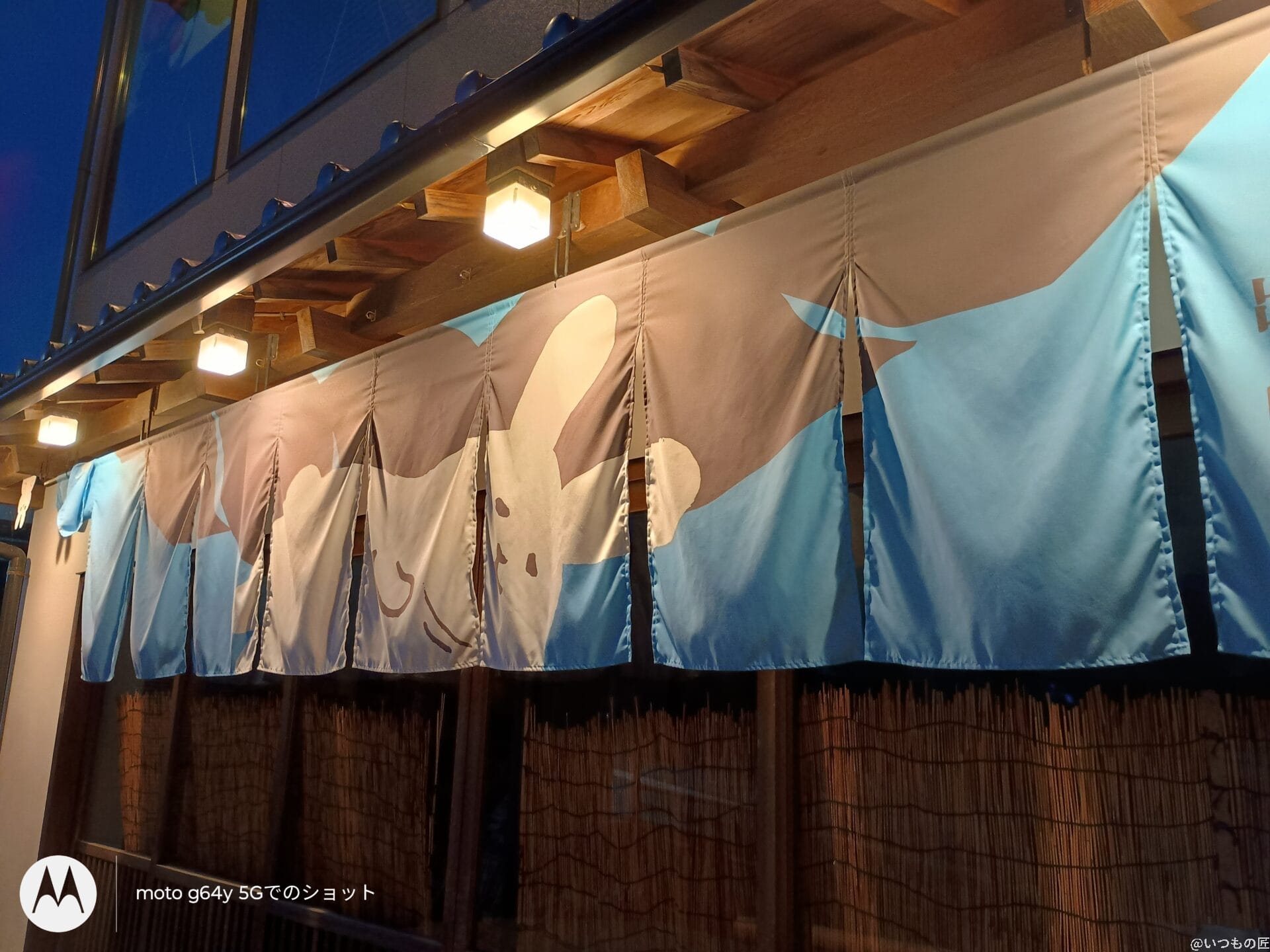 夜間であっても明るい場所では、より美しい夜景写真が撮れます。作例4では、看板の文字をしっかり捉えています。さらに作例5は、のれんのしわや屋根の細かな木目調など、細部まで描写できています。