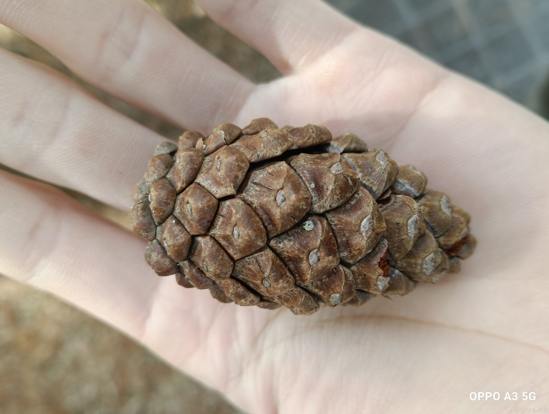 掌にのせたおもちゃや、松ぼっくりも鮮明に再現されています。同化しやすい肌色の背景でも、被写体の輪郭がきれいに描写できています。