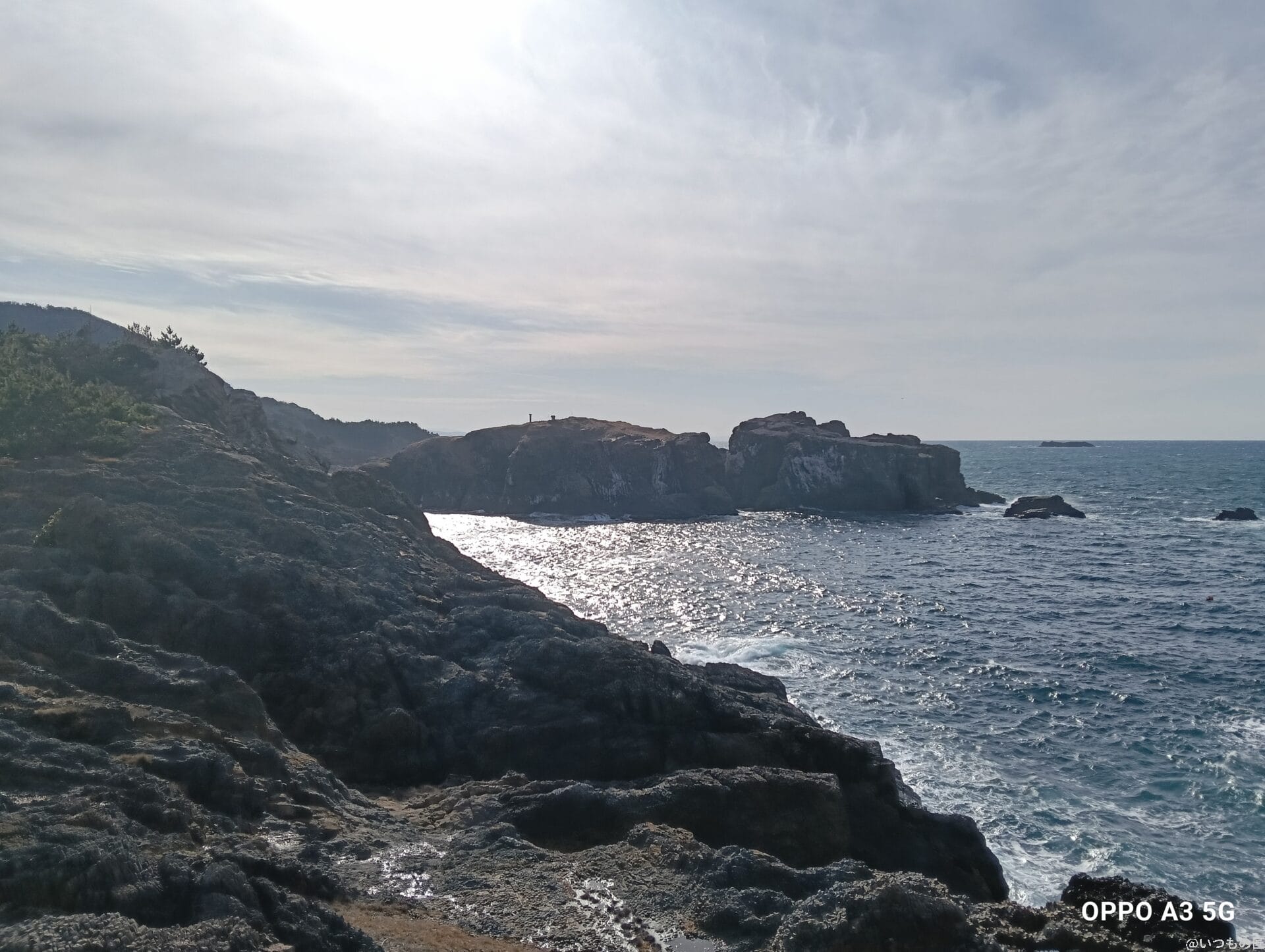 OPPO A3 5GのHDR機能は、撮影シーンによってその効果に違いがあります。以下のような逆光下では、黒つぶれしていた岩肌の色味がしっかり再現されています。しかし、光で白みがかった部分は補正できていません。